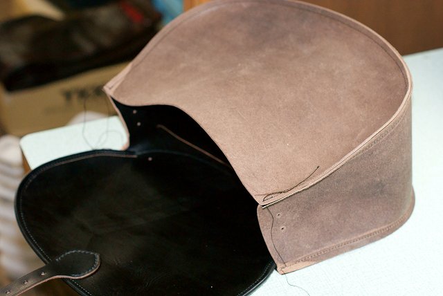 パイピングは厚めの革を使用しているので、ラッパは使わずパイピング。